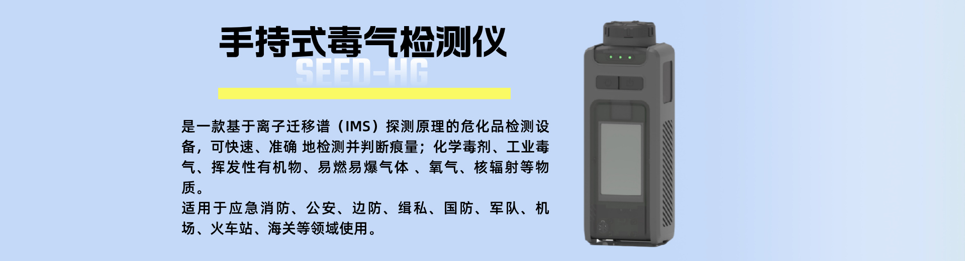 手持式毒氣檢測儀是一款基于離子遷移譜(IMS)探測原理的危化品檢測設備,可快速、···...